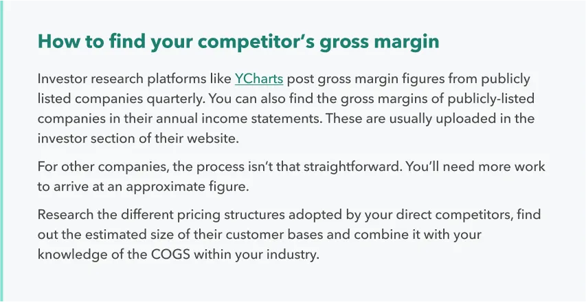 The bottom line: Find out the average gross margins of your competitors and strive to do better. But don’t forget your company’s scale influences the margins.