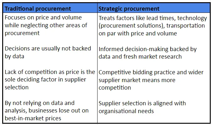 Traditional procurement versus strategic procurement
